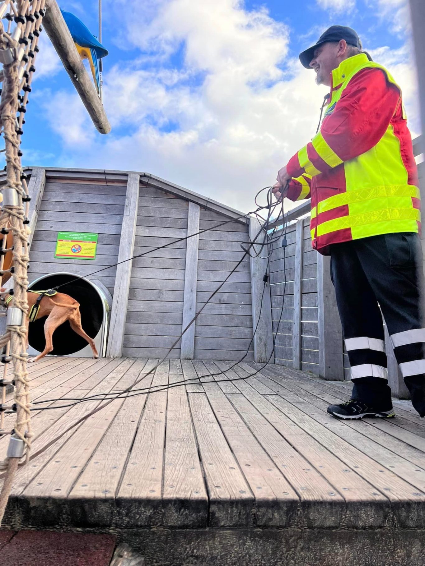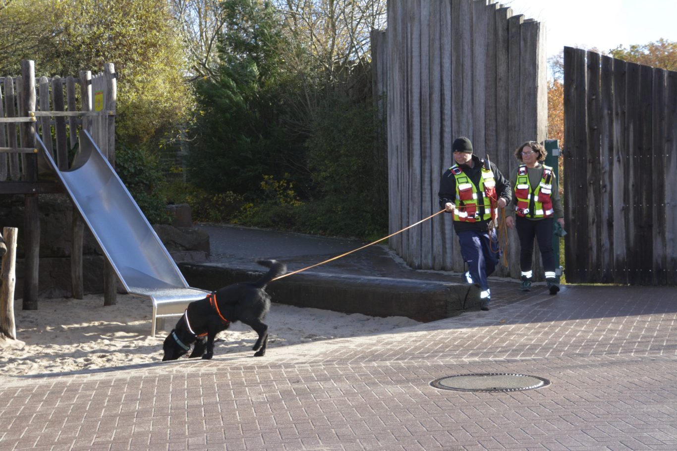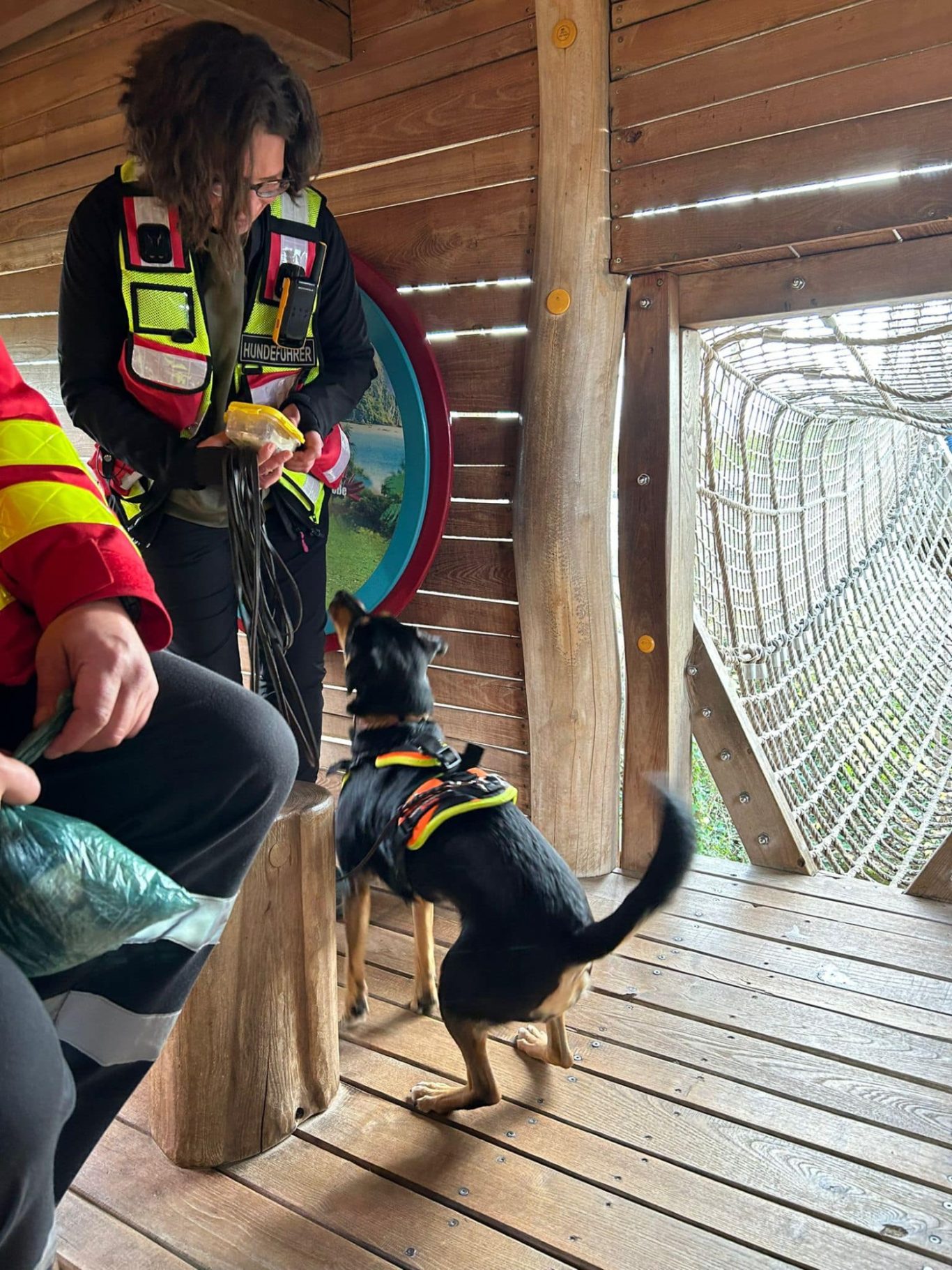 Inmitten der bunten Kulisse des FunParks wagten sich unsere Mantrailer-Teams in dunkle Räume, überquerten schwingende Hängebrücken und erkundeten geheime Gänge. Eine wahre Mutprobe für unsere vierbeinigen Helden! Die ungewohnte Geräuschkulisse und die besonderen Gegebenheiten des Geländes und der Gebäude forderten nicht nur die Konzentration, sondern auch die Geduld von Hunden und ihren menschlichen Begleitern.
